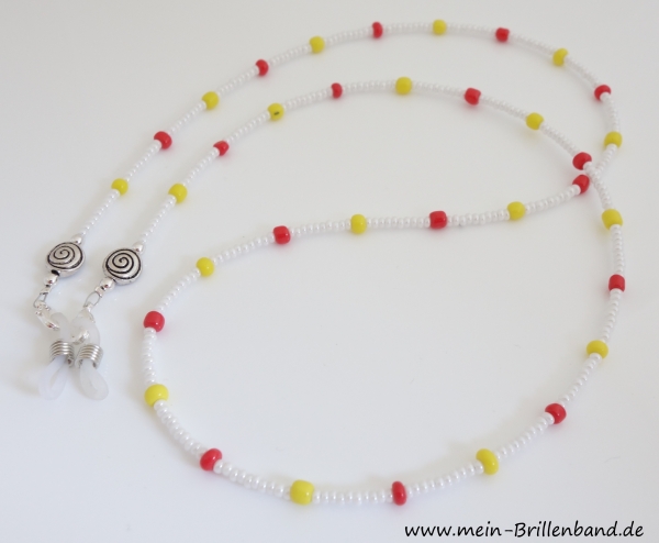 Handgefertigtes Brillenband hergestellt aus Rocailles und Metallperlen