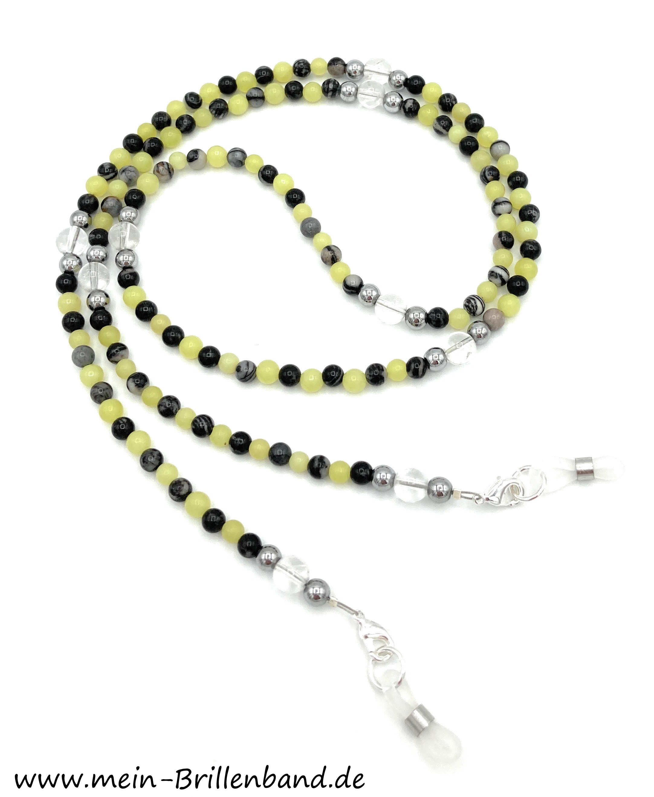 Durch die Karabinerhaken können Sie jederzeit die Brillenschlaufen austauschen. Die Perlen sind auf nylonummantelten Schmuckdraht gefädelt. Die Größenangaben sind immer ca. Angaben. Die Brille ist nur Deko!