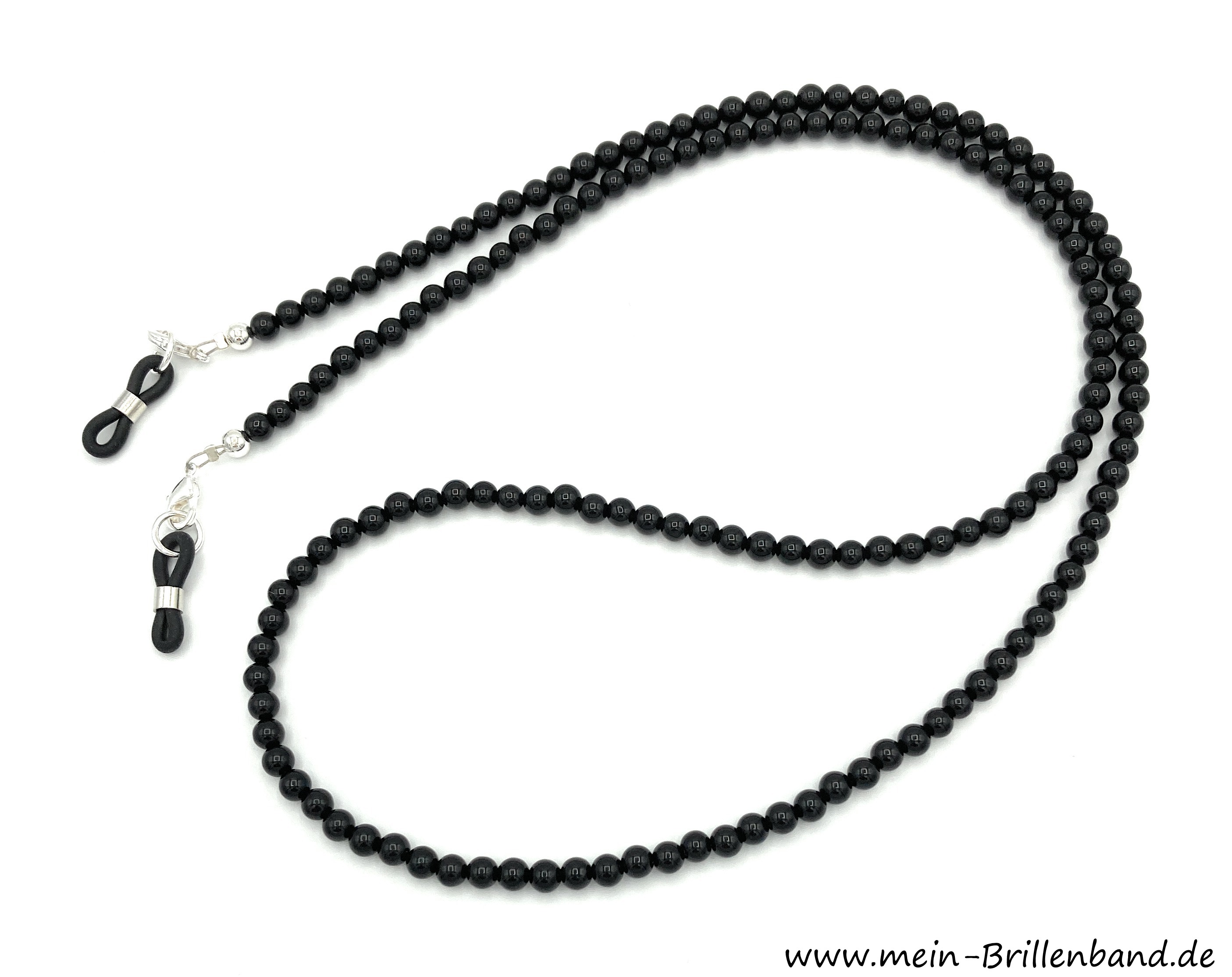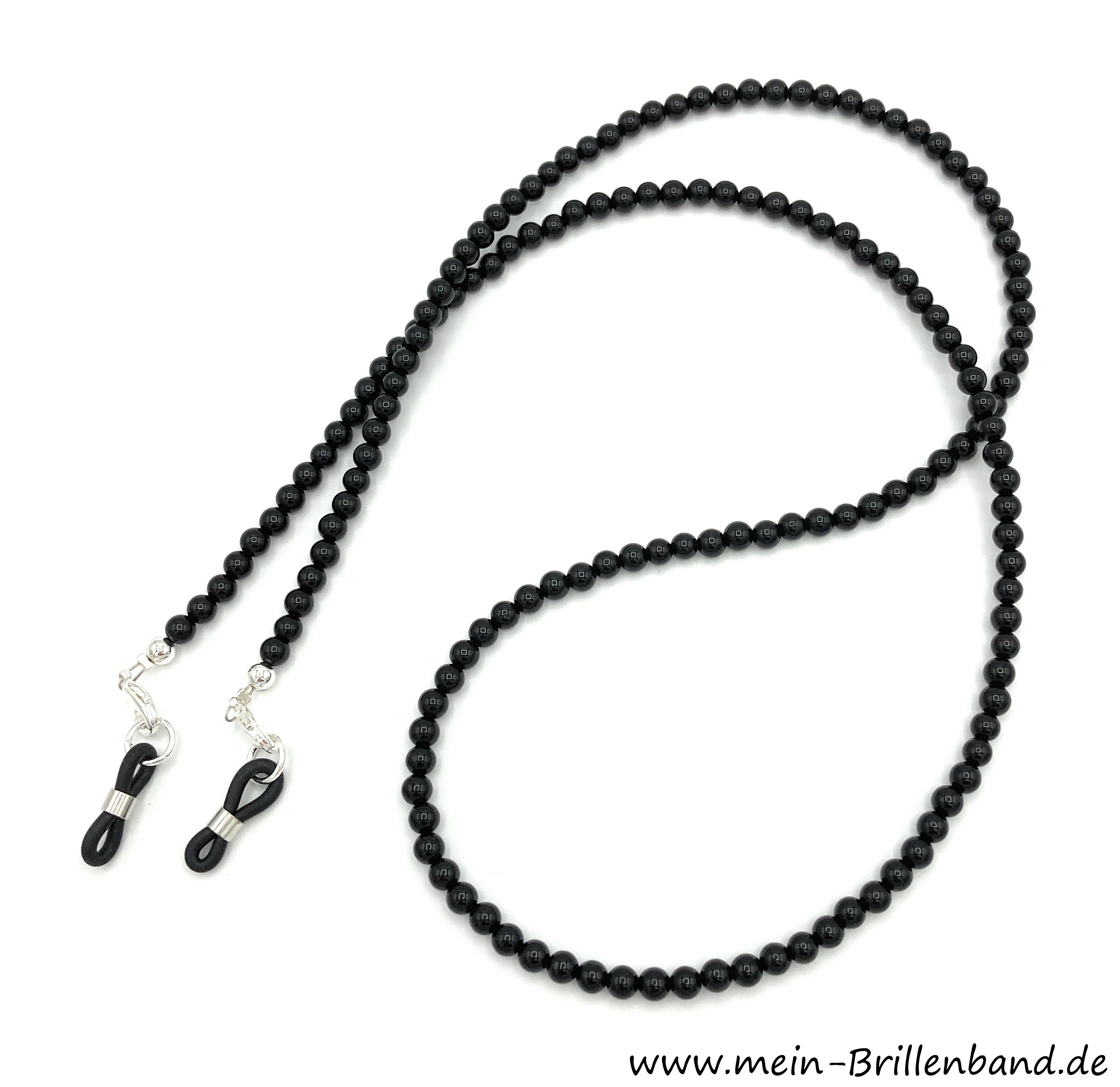 Auf Wunsch auch mit goldfarbenen Perlen am Abschluss und goldfarbenen Karabiner, sowie auch mit andersfarbigen Brillenschlaufen erhältlich.
