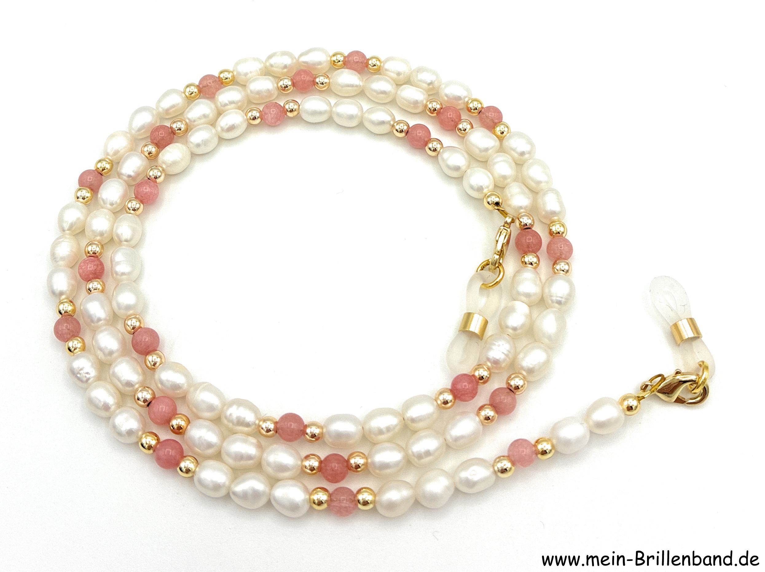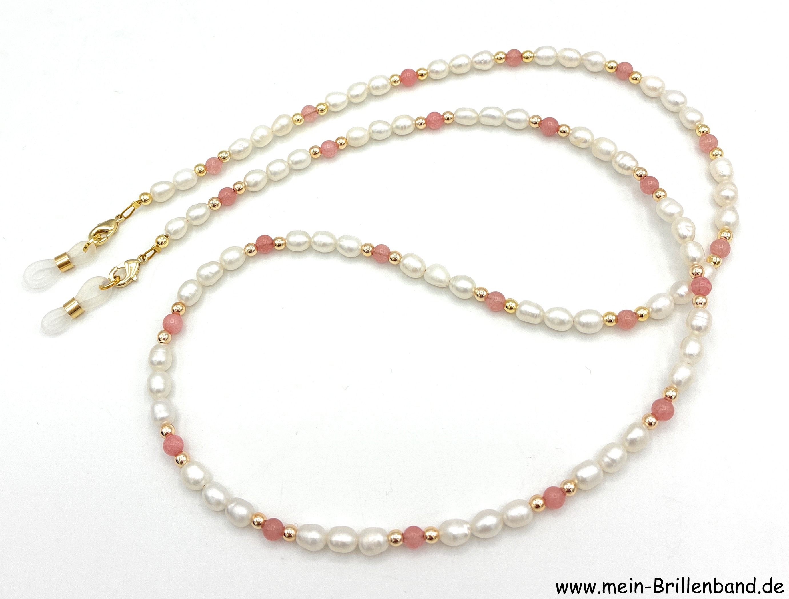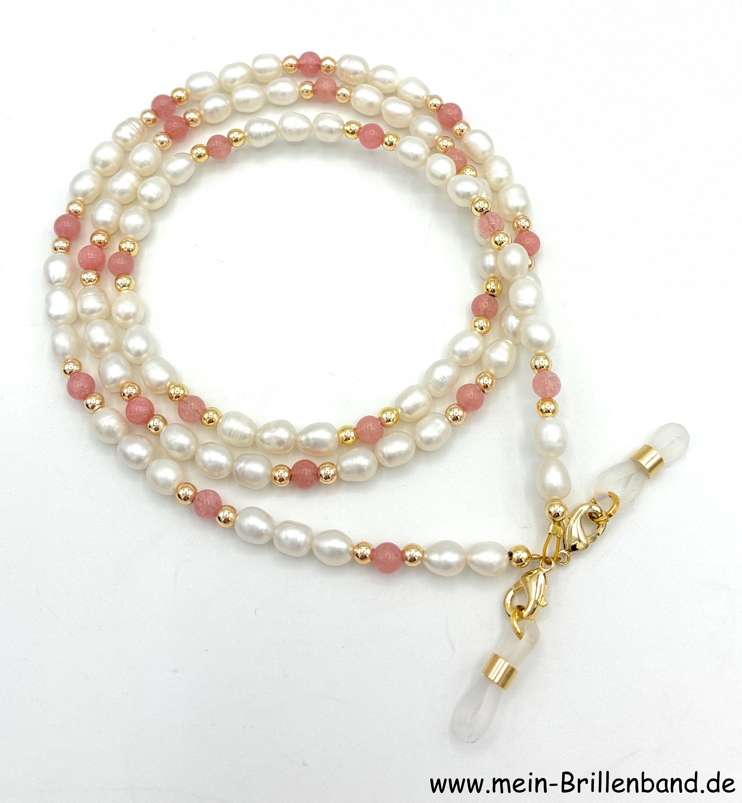 Verleihen Sie Ihrer Brille einen stilvollen Akzent – mit dieser edlen, handgefertigten Brillenkette aus hochwertigen Süßwasserzuchtperlen und Edelsteinperlen. Jede Kette wird liebevoll von Hand gefertigt.