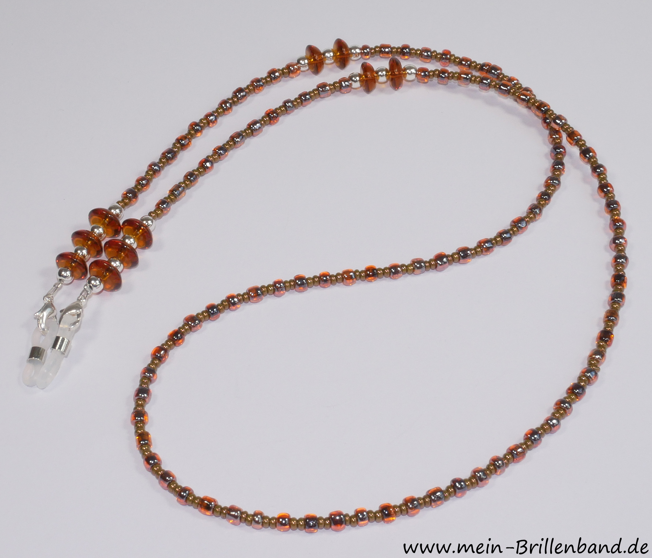 Handgefertigte Brillenkette hergestellt aus Rocailles, Glasscheiben