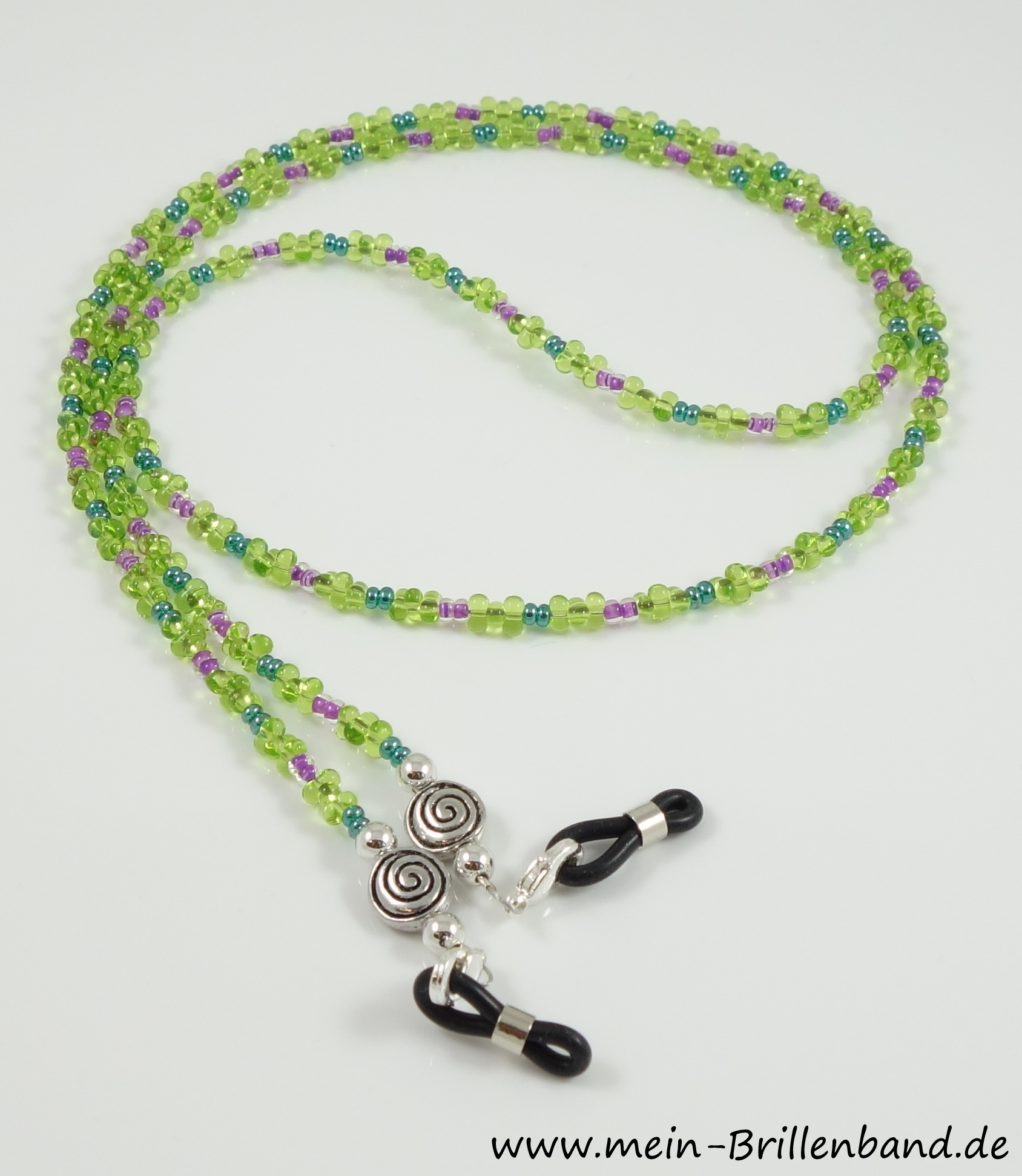 Die Perlen sind auf nylonummantelten Schmuckdraht gefädelt. Die Silikonhalter sind jeweils mit einem Karabiner an der Kette befestigt, so dass sie auch mal ausgewechselt werden können. Länge inkl. verstellbarer Brillenschlaufen und Karabiner. Die Größenangaben sind immer ca. Angaben. Es handelt sich nur um das Brillenband – die Brille ist nur Deko!