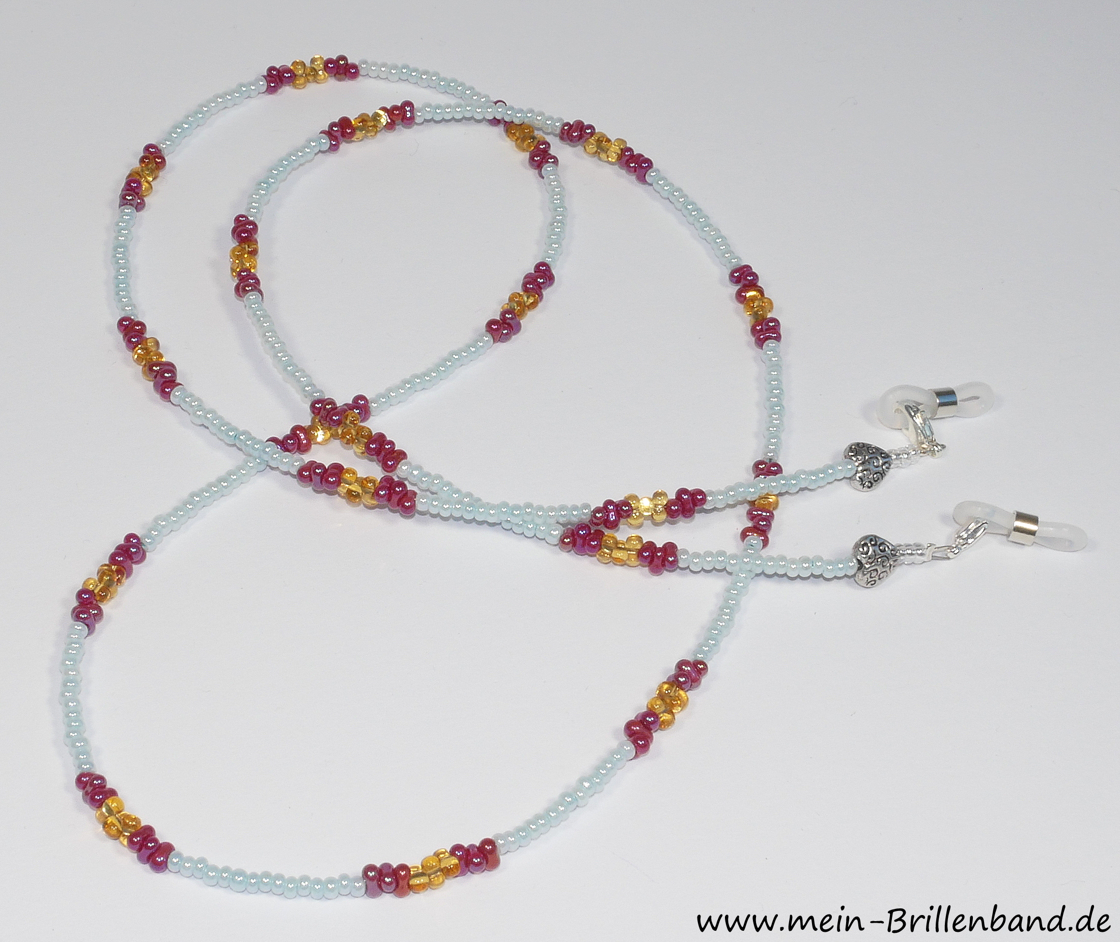 Handgefertigte Brillenkette hergestellt aus Rocailles, Metallperlen