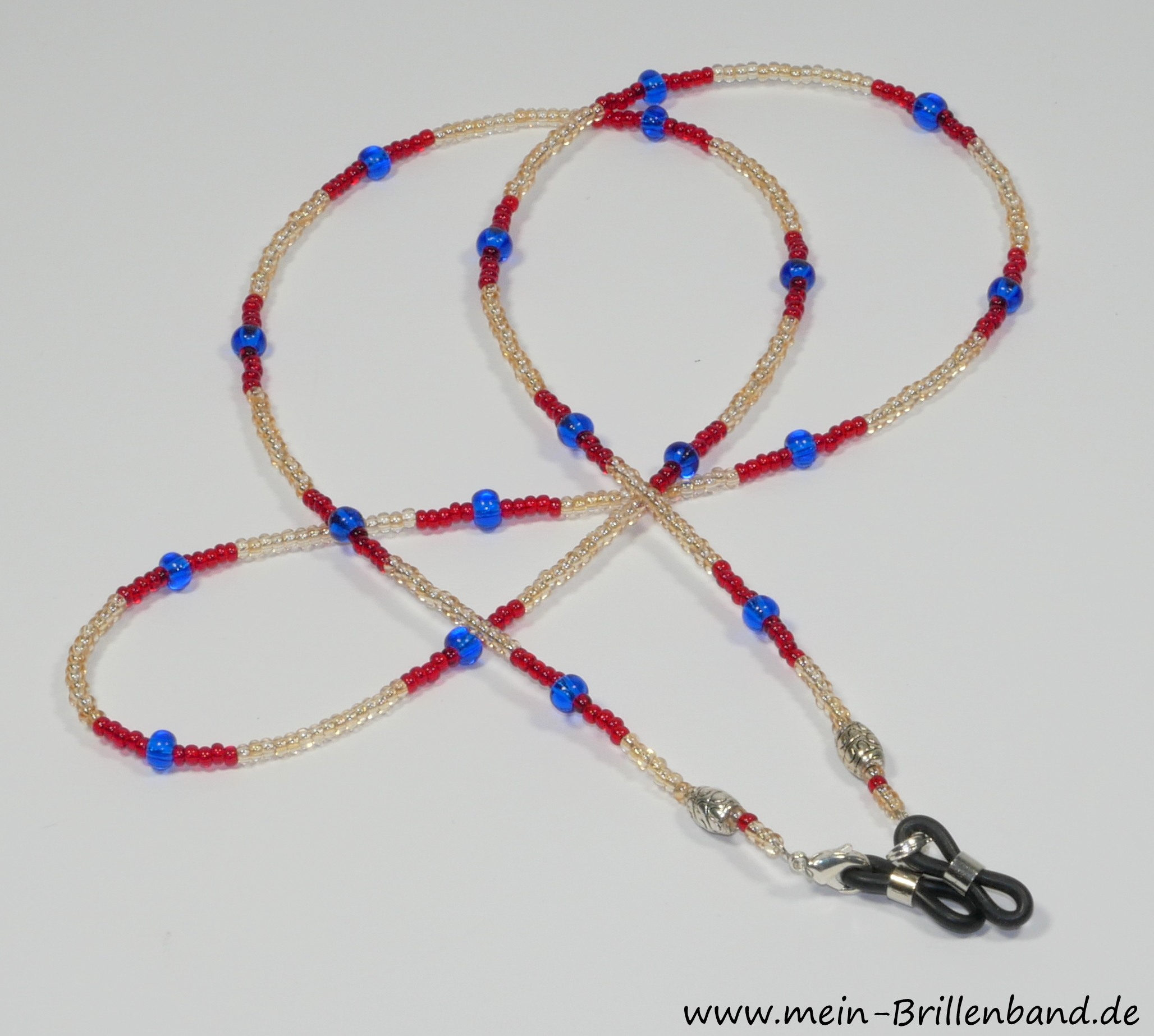 Durch die Karabinerhaken können Sie jederzeit die Brillenschlaufen austauschen. Die Perlen sind auf nylonummantelten Schmuckdraht gefädelt. Die Größenangaben sind immer ca. Angaben. Die Brille ist nur Deko!