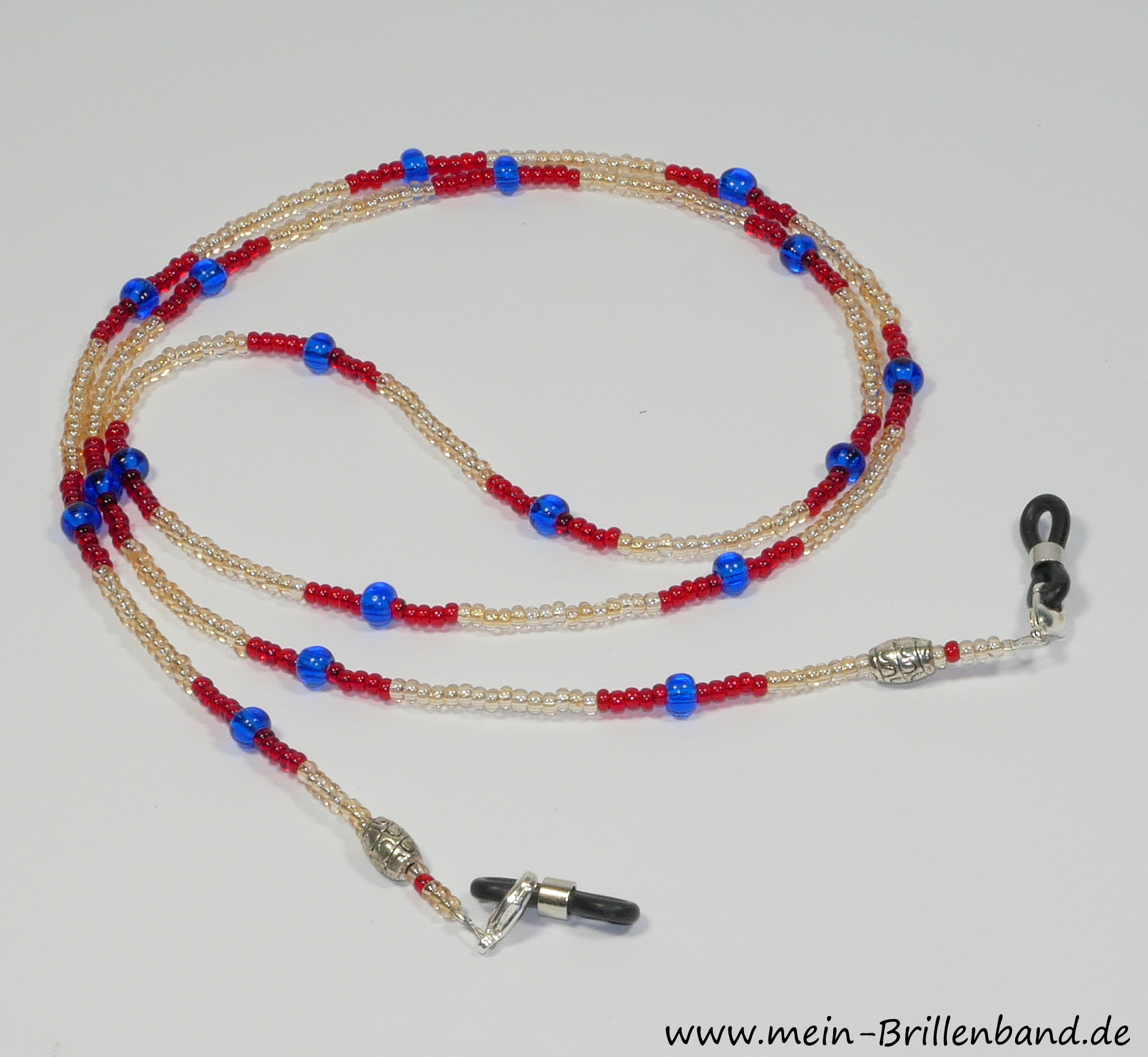 Handgefertigte Brillenkette hergestellt aus Rocailles, Metallperlen